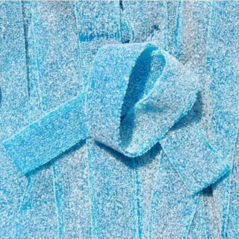 sucré, sirop de glucose-fructose, farine de blé (gluten), eau, acidifiants (acide citrique, acide malique), humectant (sirop de sorbitol), graisse de palme*, amidon de maïs, émulsifiant (mono- et diglycérides d'acides gras), arôme, colorants : E133.