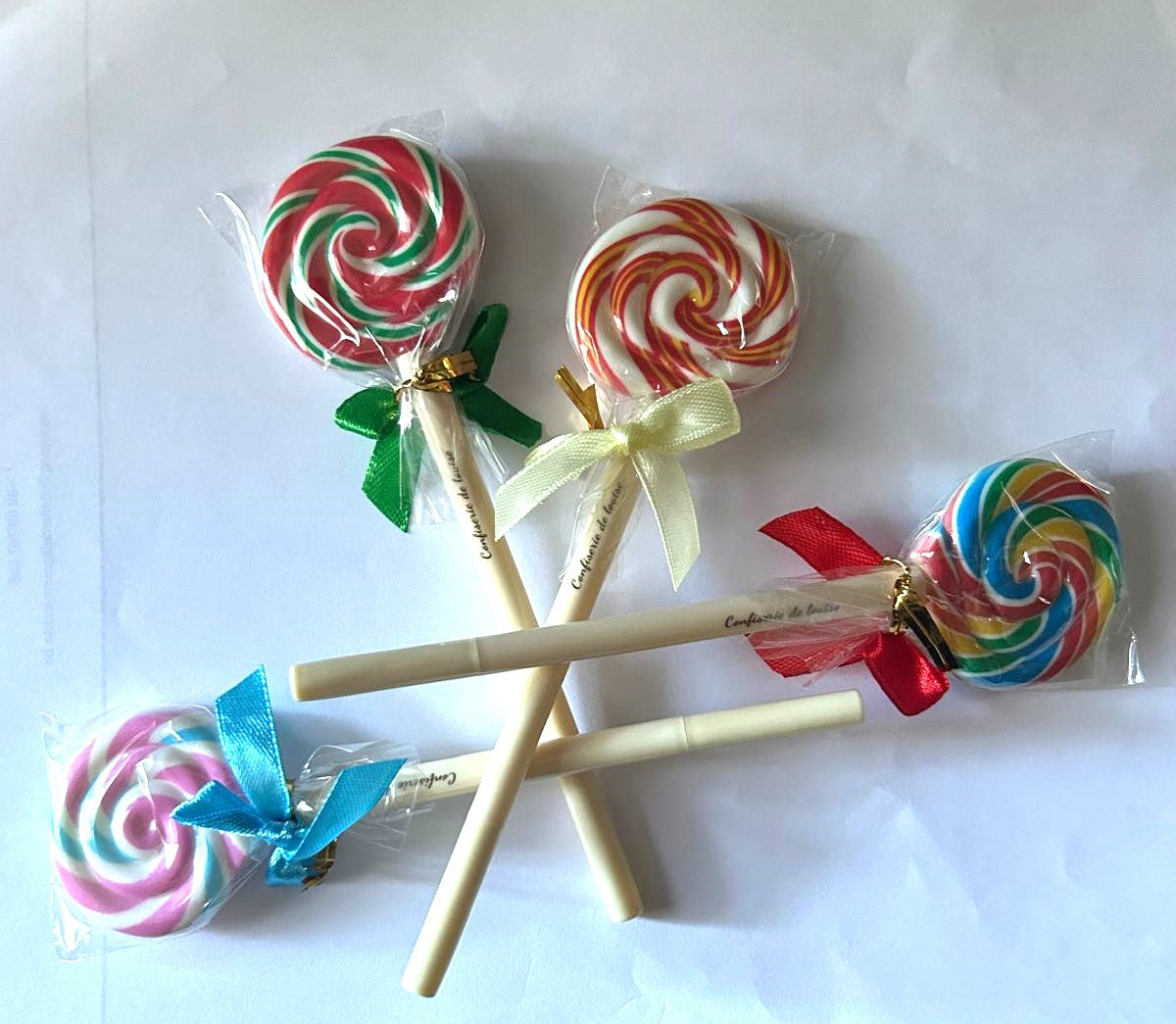 Retouver le stylo personnalisé au nom de la confiserie de louise en forme de sucette coloré
